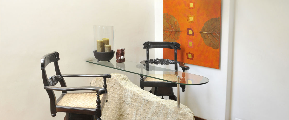 Our unique aesthetic is born from a fondness for indigenous art and a deep admiration for the natural world. Elements of Nature organically assimilate into Dwar’s signature living spaces, which typically have minimal walls, often, high ceilings and open-plan layouts that spill into lush landscaped outdoors. We consciously design to facilitate cross-ventilation and make the most of available sunlight. Rustic elements like sloping Mangalore tile roofs with glass inlays in calming earth colours add warmth to our contemporary designs.
